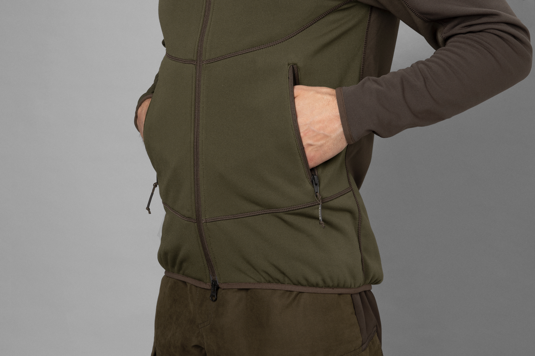 The men's Harkila Olaf fleece jacket offers comfort and style. Made with ArcStretch® fabric, it provides softness, stretch, and moisture-wicking properties. With three pockets, it's perfect for warm-weather activities or layering.